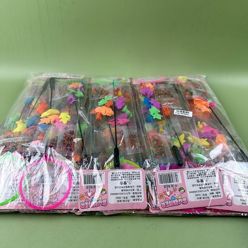 Players try to scoop as many fish as they can into their scoop within a set time (e.g., 60 seconds).