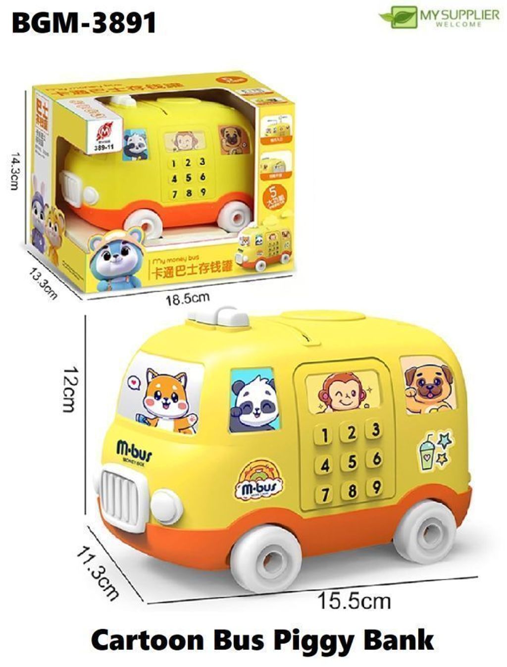BGM-3891 Cute Cartoon Bus Piggy Bank L15*W11*H11cm
