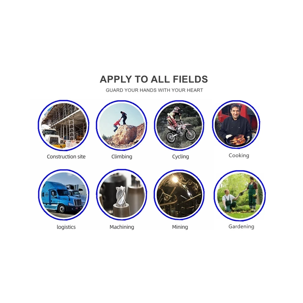 ⭕ Commodity use: Suitable for hand safety protection in oil-free workplaces such as machinery manufacturing, shipbuilding, metallurgy, forestry, ports, mining construction, and fire loading and unloading.