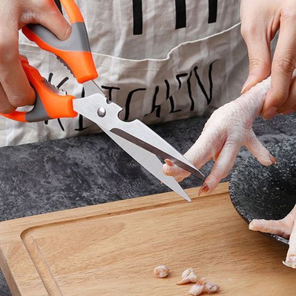 • Bone Notch: Many kitchen shears have a built-in notch near the pivot point designed specifically for cracking through small bones (like chicken wings) or shellfish shells.