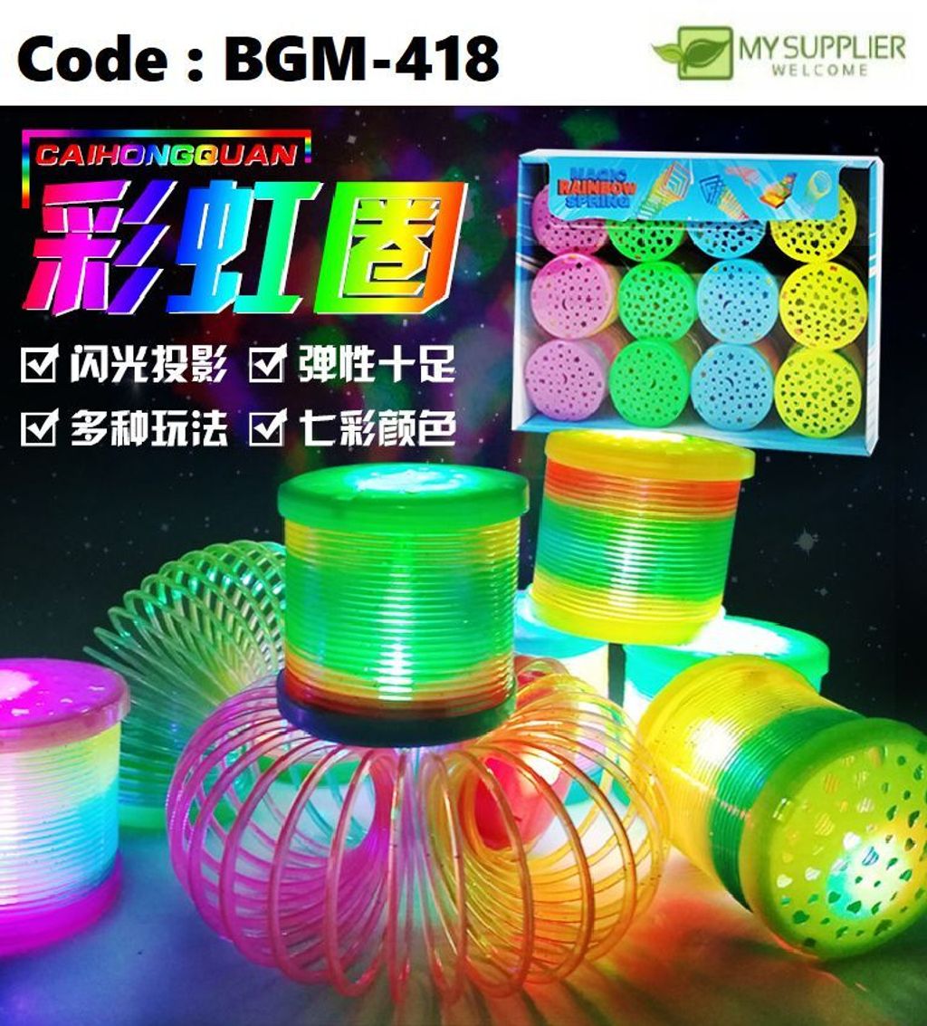 BGM-418 Glowing Luminous Rainbow Spring 3D Magic Rainbow Circle Flash Spring Coil Magic Circle Stall 5cm