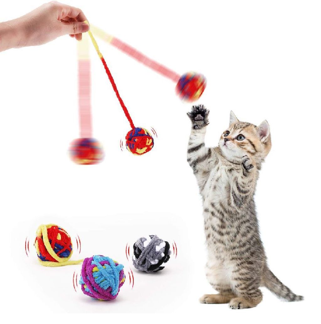 Colourful Woollen Yarn Ball With Bell Inside Cat Chewing Teasing Cat Toy Ball L31cm*W5.5cm