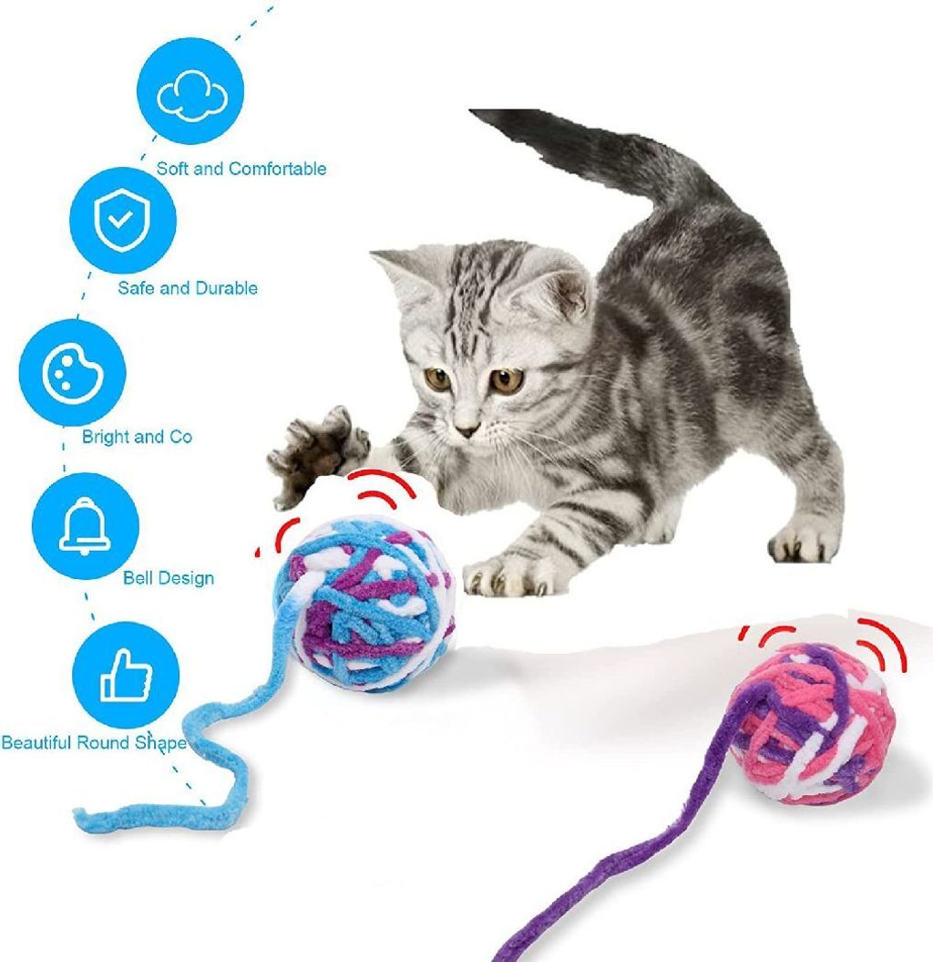 BGM-703 Colourful Woollen Yarn Ball With Bell Inside Cat Chewing Teasing Cat Toy Ball L31cm*W5.5cm