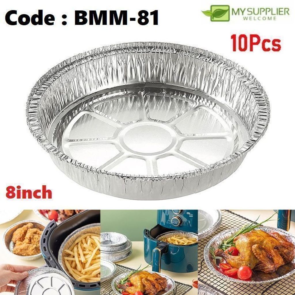 BMM-81 10pcs Air Fryer Round Tin Foil Tray Disposable Thickened High-temperature Cooking Dish D20cm*H4.5cm
