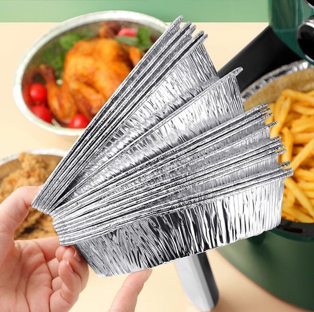 10pcs Air Fryer Round Tin Foil Tray Disposable Thickened High-temperature Cooking Dish D20cm*H4.5cm