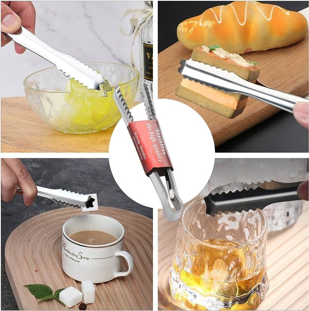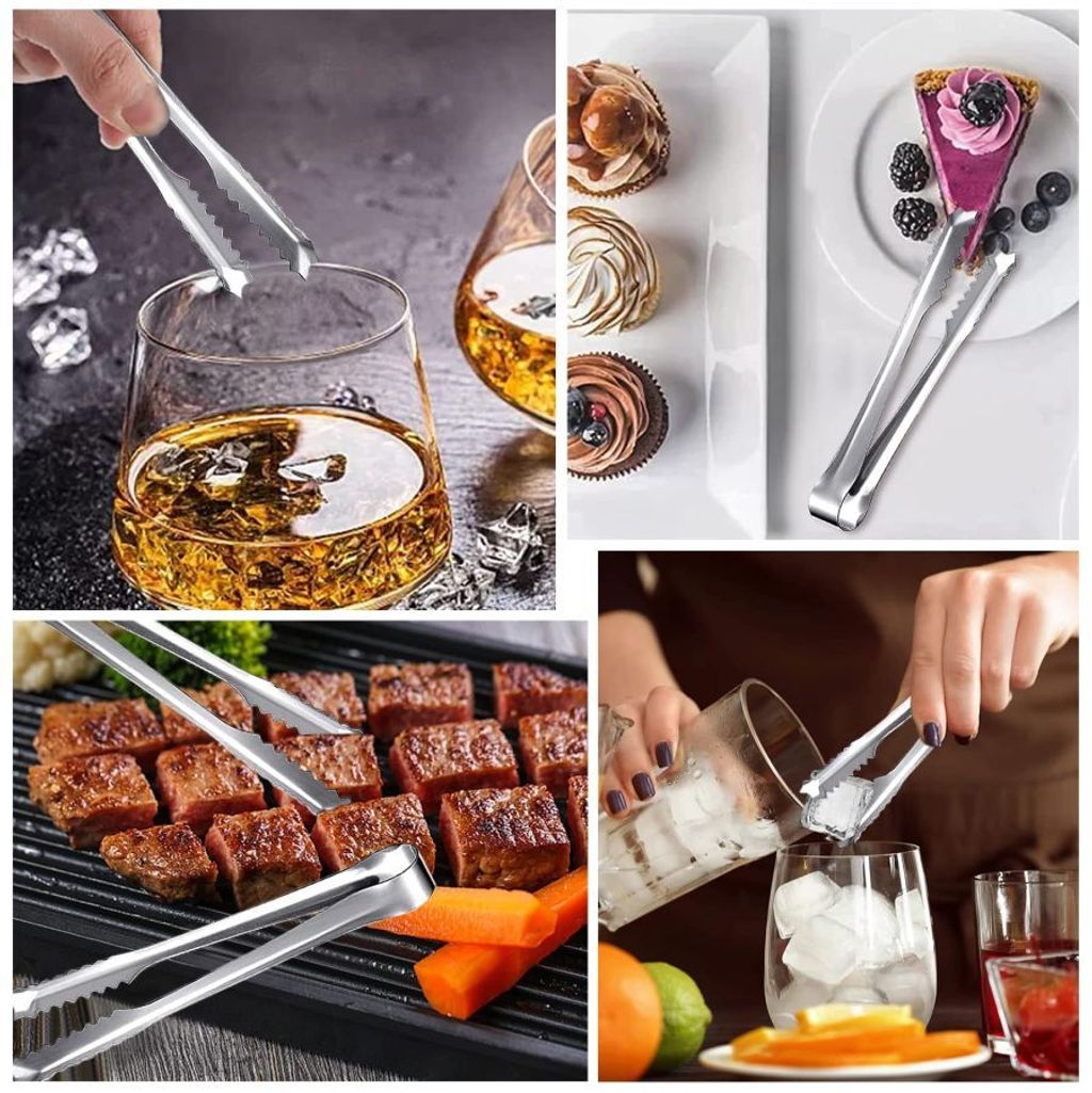 KIC-12 6inch Mini Stainless Steel Ice Tong For BBQ Party Bar Clip Bread Food Ice Cube Kitchen Tool 15*1.5cm