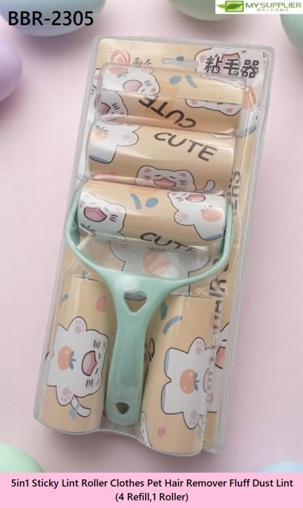 BBR-2305 5in1 Sticky Lint Roller Clothes Pet Hair Remover Fluff Dust Lint (4 Refill,1 Roller)