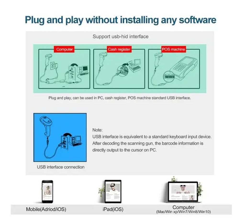BWI-HS21 DL-X209 Wired Handheld QR Code Barcode Scanner L16*W10*H6cm