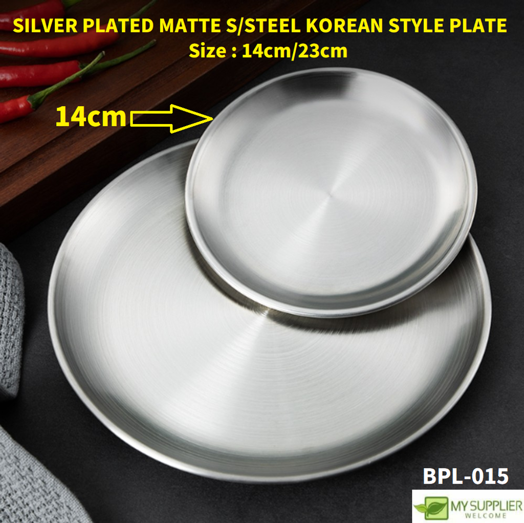 2. 14cm SILVER Plated Matte Finish Stainless Steel Korean Style Plate