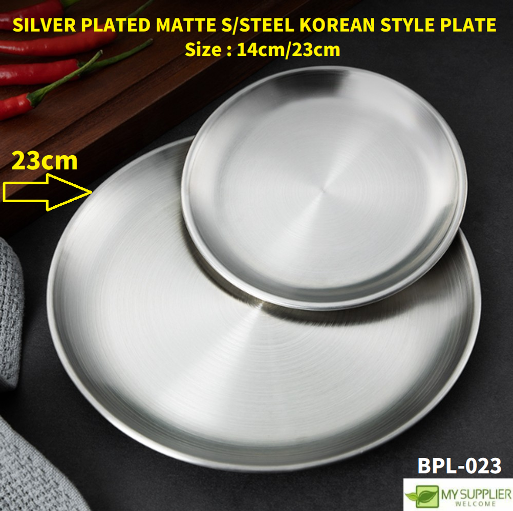 4. 23cm SILVER Plated Matte Finish Stainless Steel Korean Style Plate