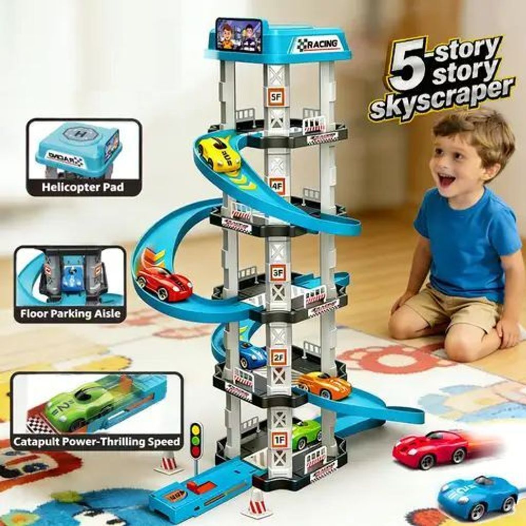 BGM-917 62PCS Adventure Car Toy Multi-Layer Track Parking Lot Mainan Kereta