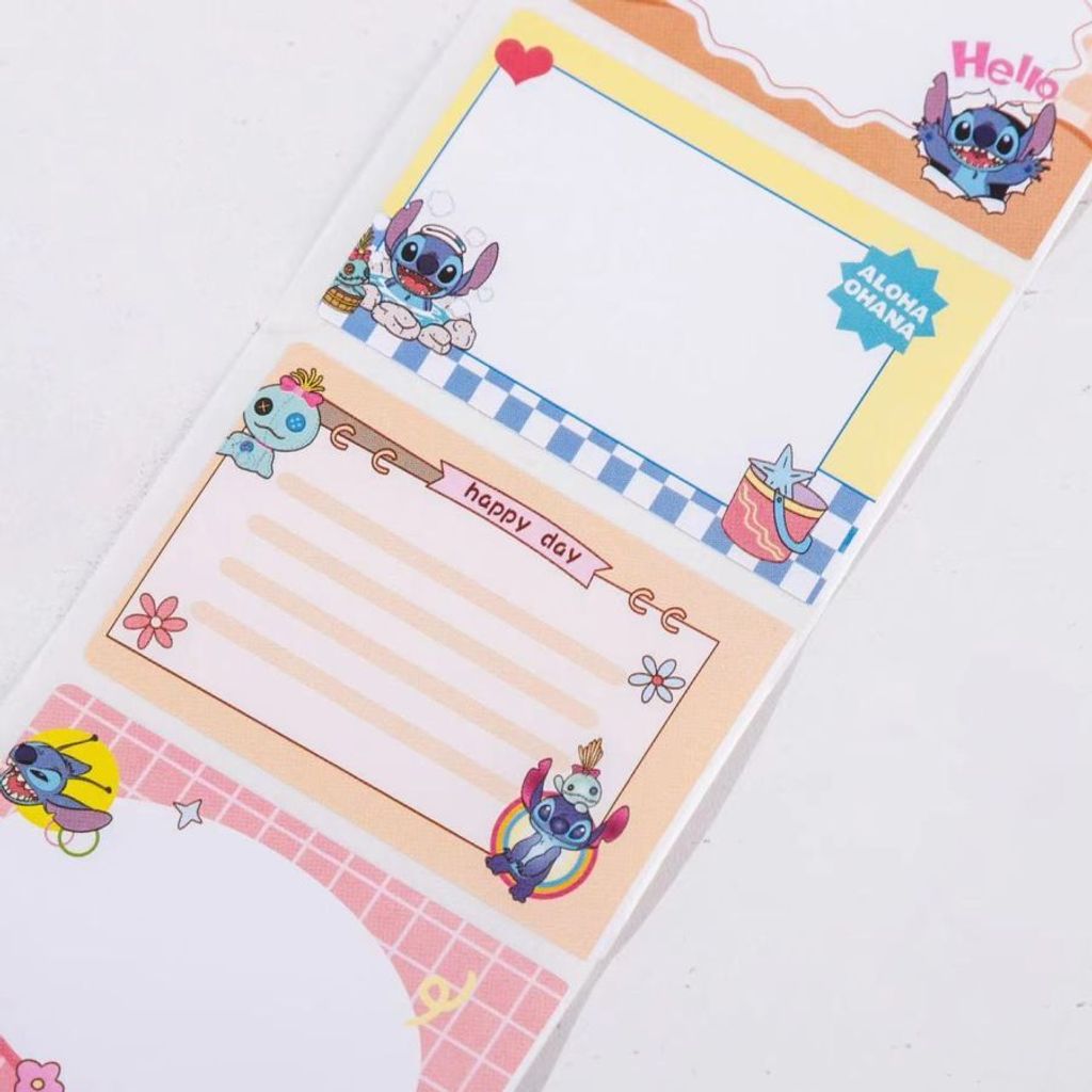 • Design: Features the Disney character Stitch in various poses on the notes and the packaging.