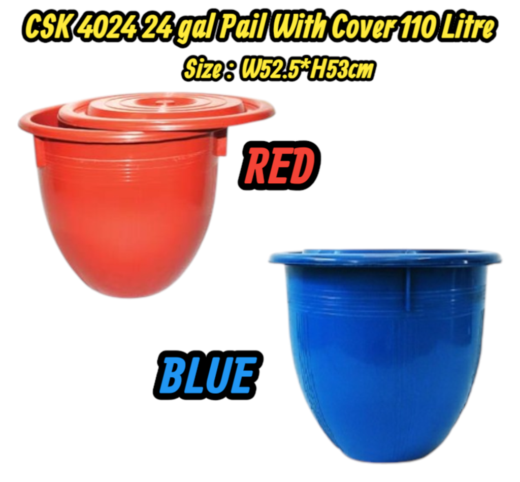 TAPC-4024-B/TAPC-4024-R CSK 4024 24 gal Pail With Cover 110 Litre W52.5*H53cm (BLUE/RED)