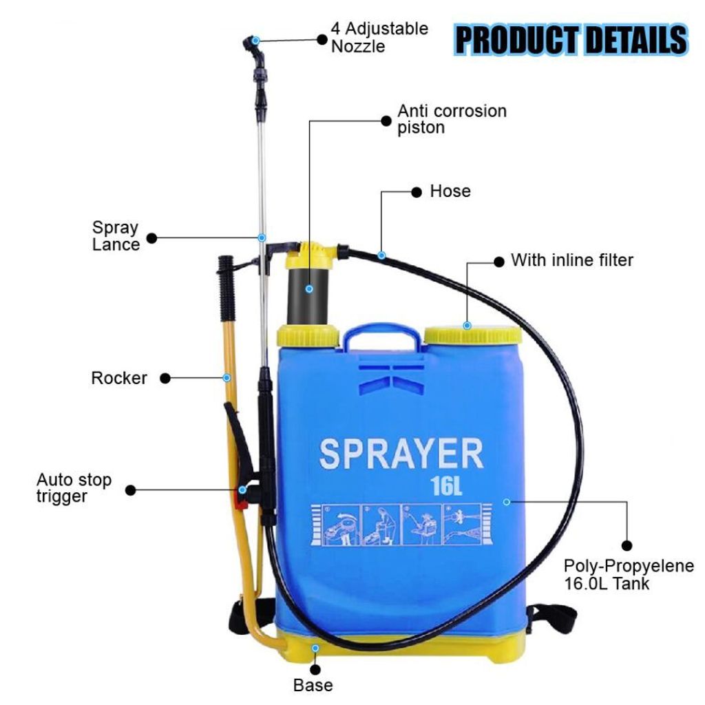 The 16L Manual Knapsack Agricultural Sprayer is a versatile, hand-operated spraying device commonly used in farming, gardening, and pest control. It relies on manual pumping to build pressure, making it a cost-effective and reliable choice where electricity or fuel-powered options aren't practical.