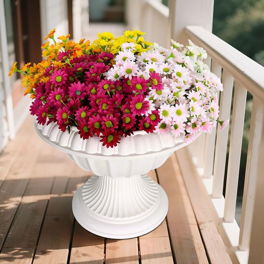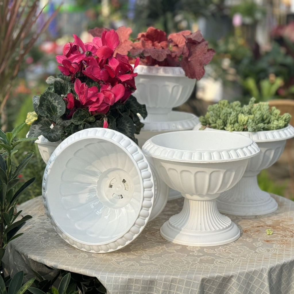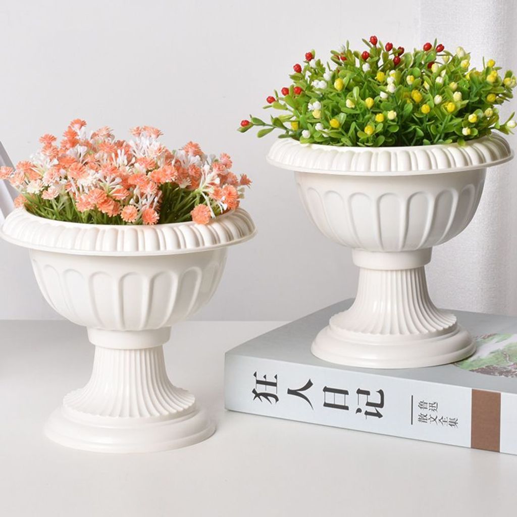 Tall, imitation ceramic Roman flower pots, direct sales, retro Nordic style, durable, white lace trim, cute European round style for balcony use.