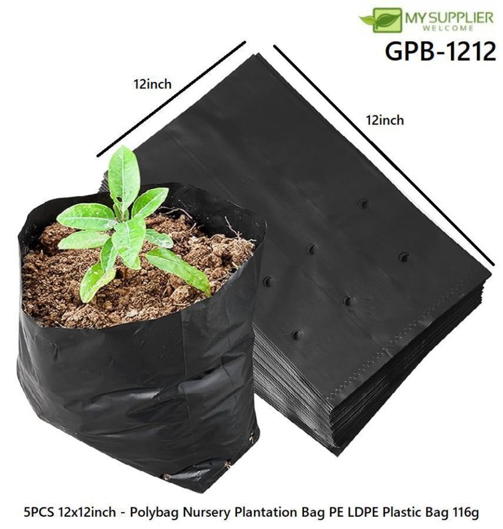 1. 5PCS 12x12inch - Polybag Nursery Plantation Bag PE LDPE Plastic Bag 116g