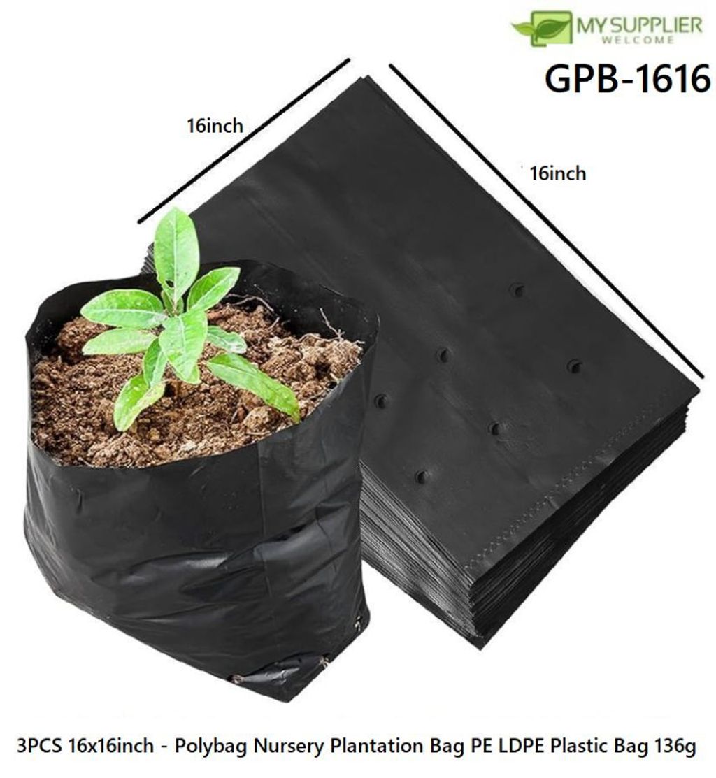 2. 3PCS 16x16inch - Polybag Nursery Plantation Bag PE LDPE Plastic Bag 136g