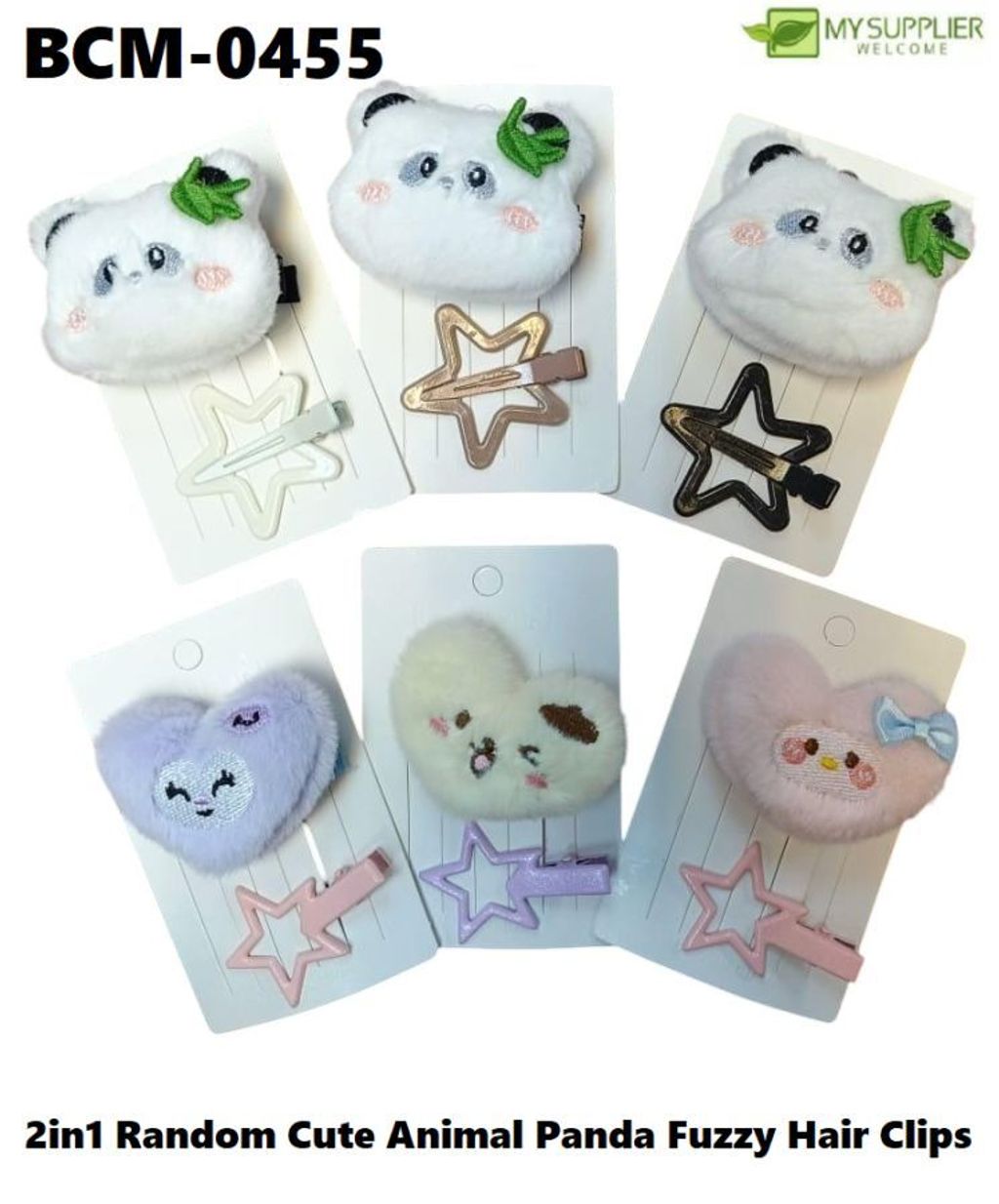 BCM-0455 2in1 Random Cute Animal Panda Fuzzy Hair Clips