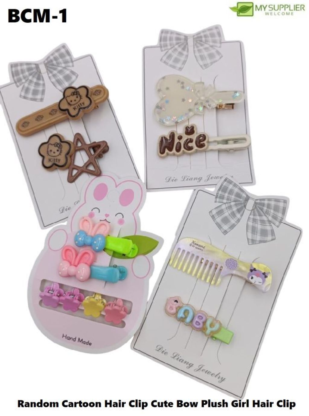 BCM-1 3pcs/2pcs(SET) Random Cartoon Hair Clip Cute Bow Plush Girl Hair Clip