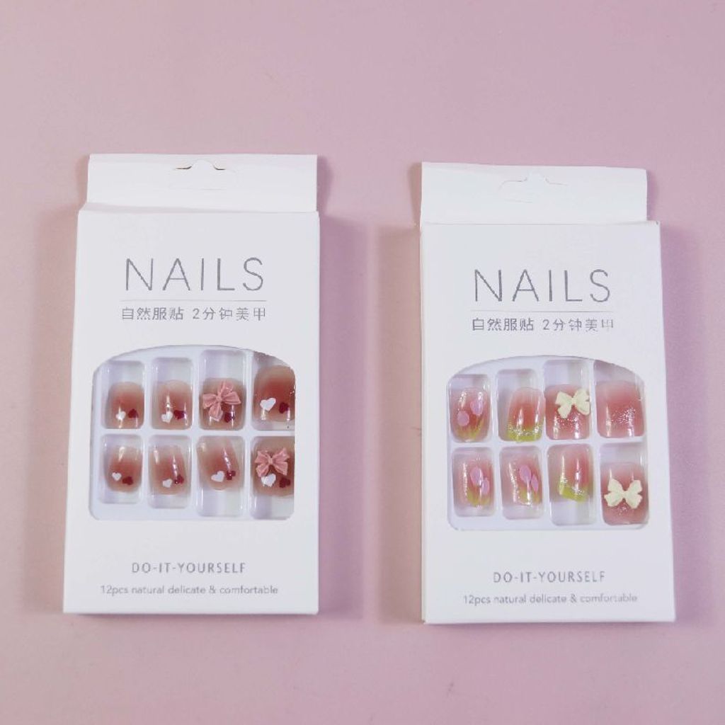 BCM-327 132 12pcs Simple Fake Nails with Glue