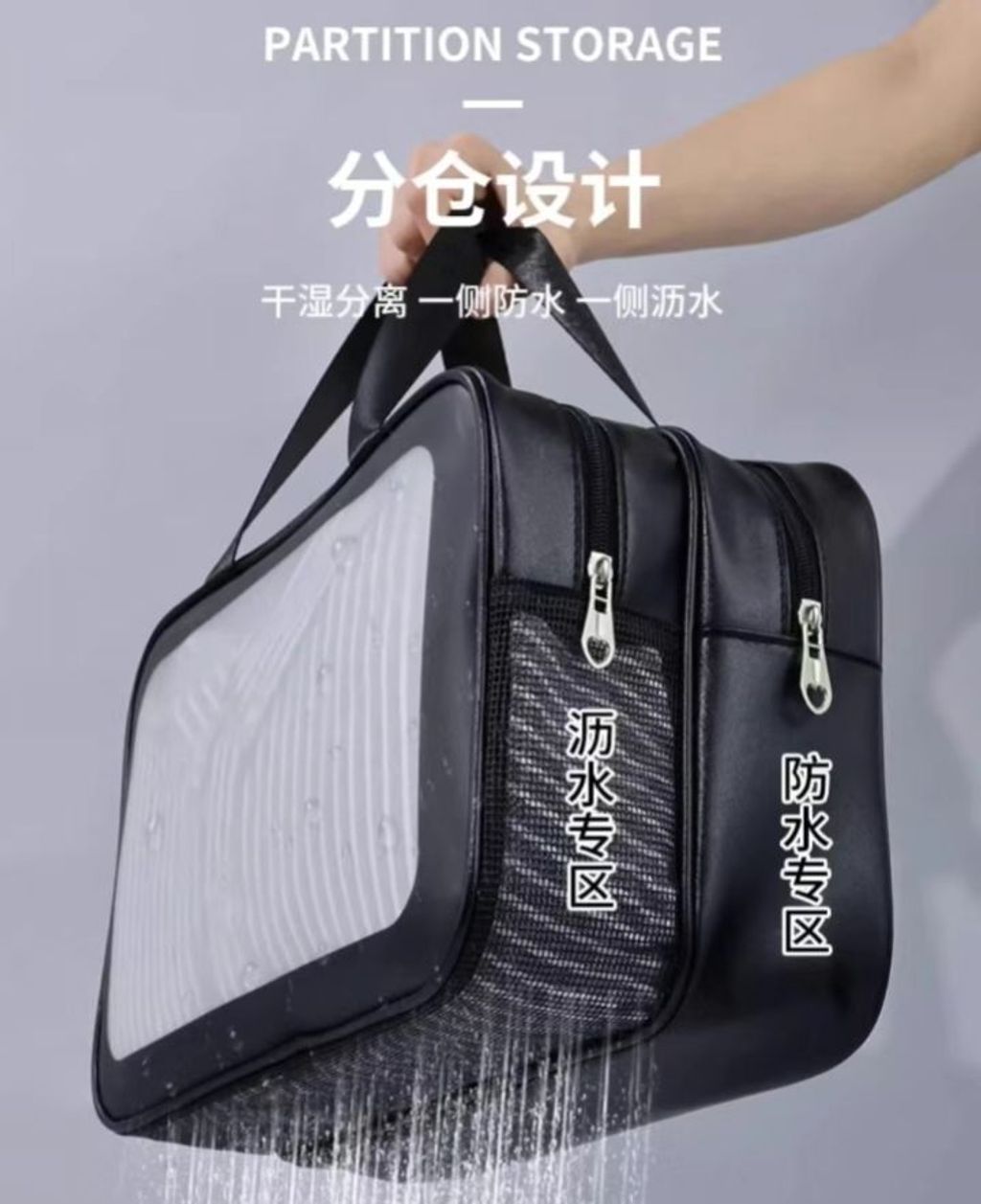 3. BLACK162 Plastic Dry and Wet Separation Toiletary Bag L31*W15*H21cm