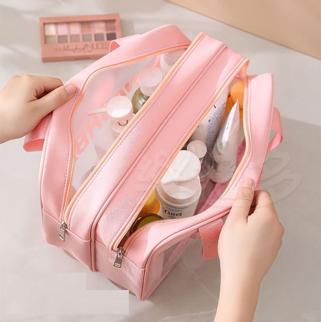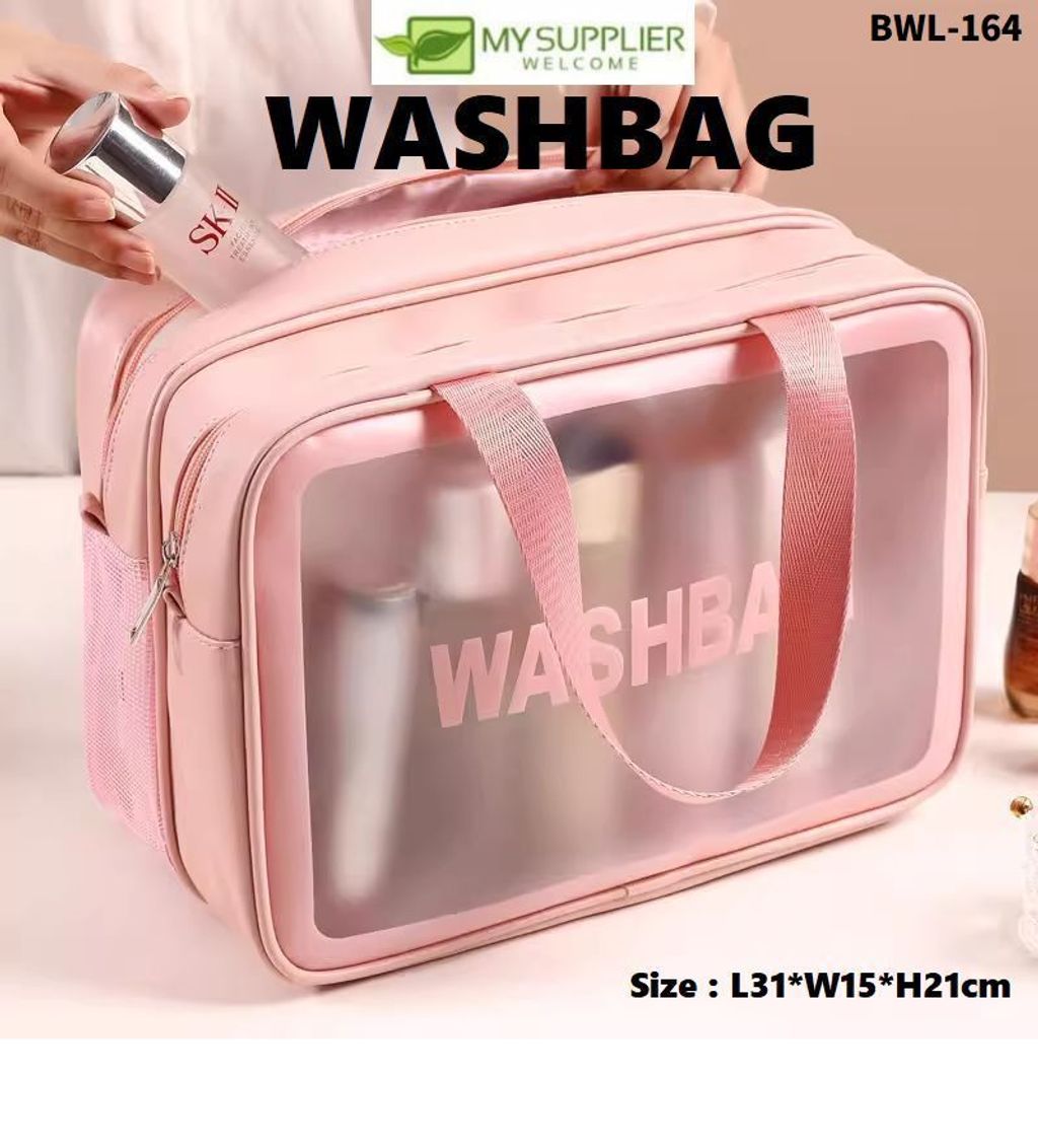 1. PINK 164 Plastic Dry and Wet Separation Toiletary Bag L31*W15*H21cm