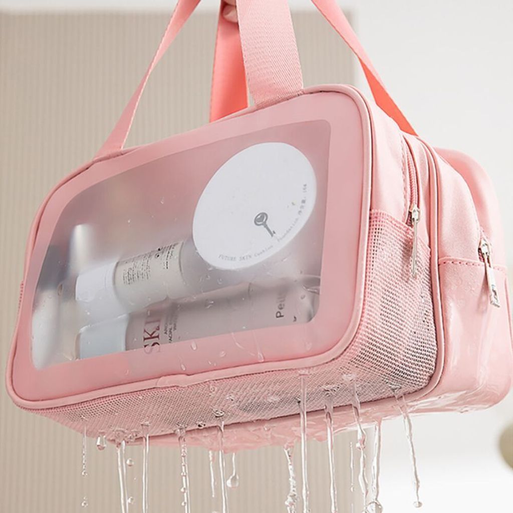 ✅ Waterproof Compartments – Separate sections for wet items (razors, soap, toothpaste) and dry items (brushes, makeup, cotton swabs).