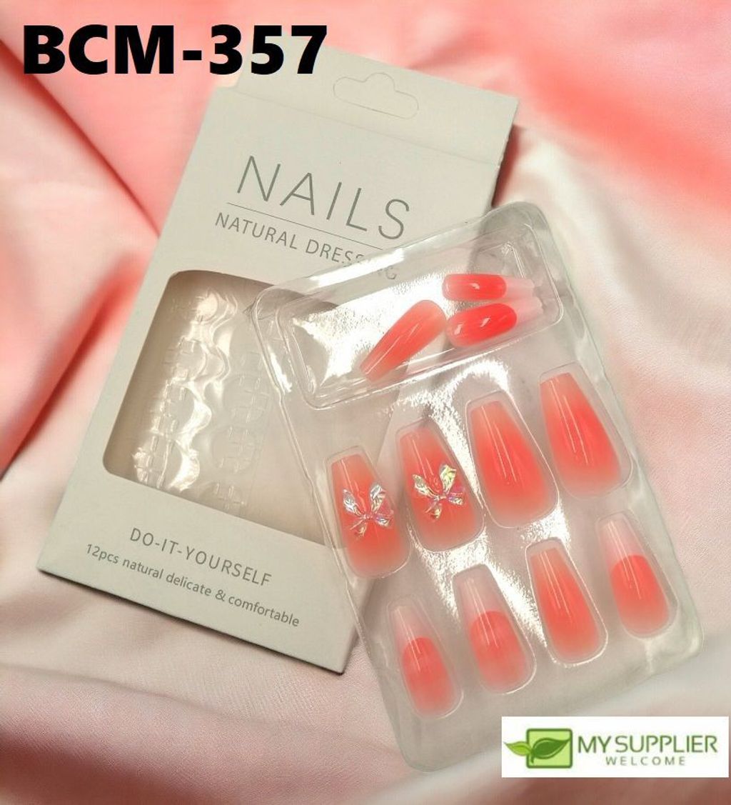 BCM-357 12pcs Long Fake Nails With Stone Nail Art
