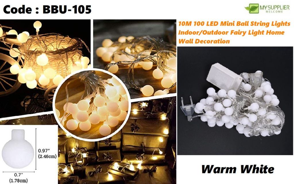 BBU-105 10M 100 LED Mini Ball String Lights Indoor/Outdoor Fairy Light Home Wall Decoration - Warm White