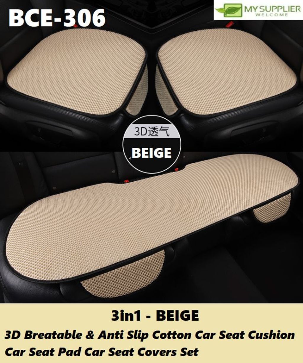 BCE-306 BEIGE 3in1 3D Breatable & Anti Slip Cotton Car Seat Cushion Car Seat Pad Car Seat Covers Set