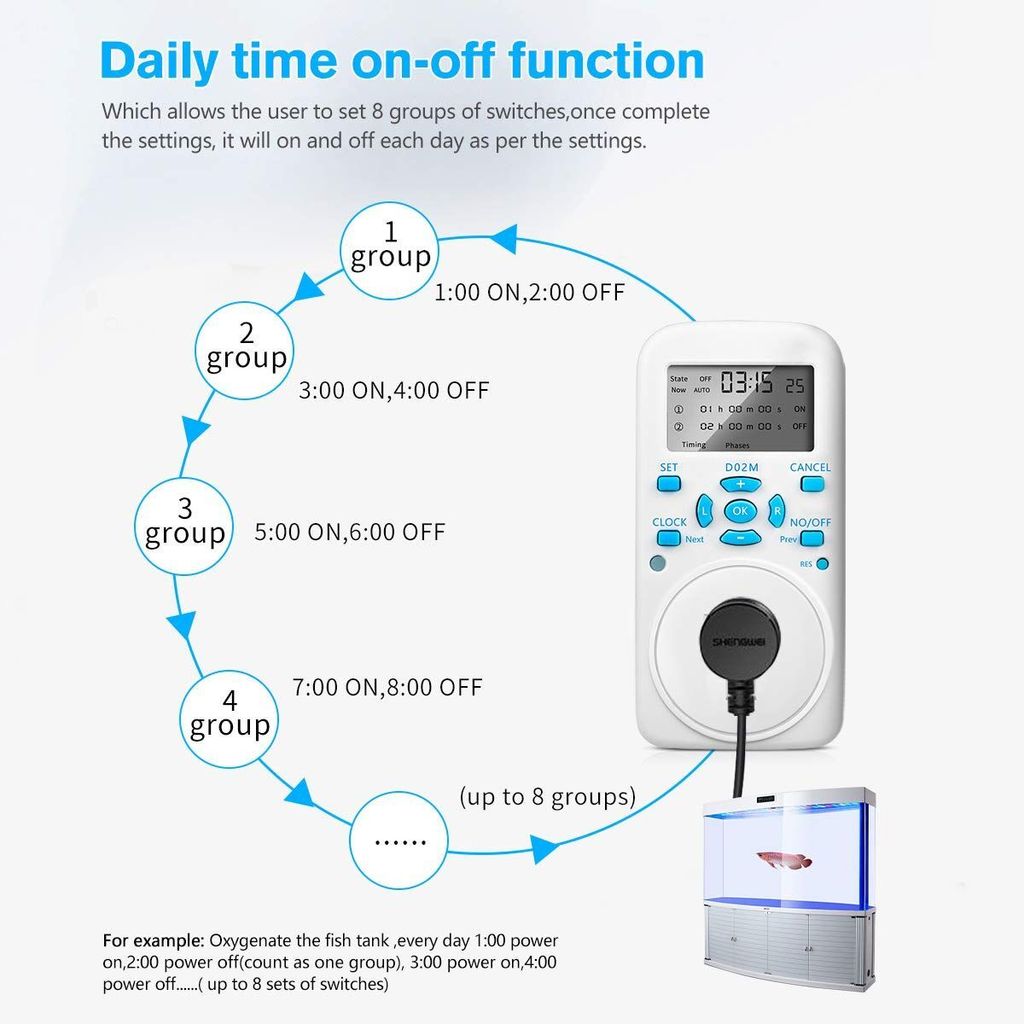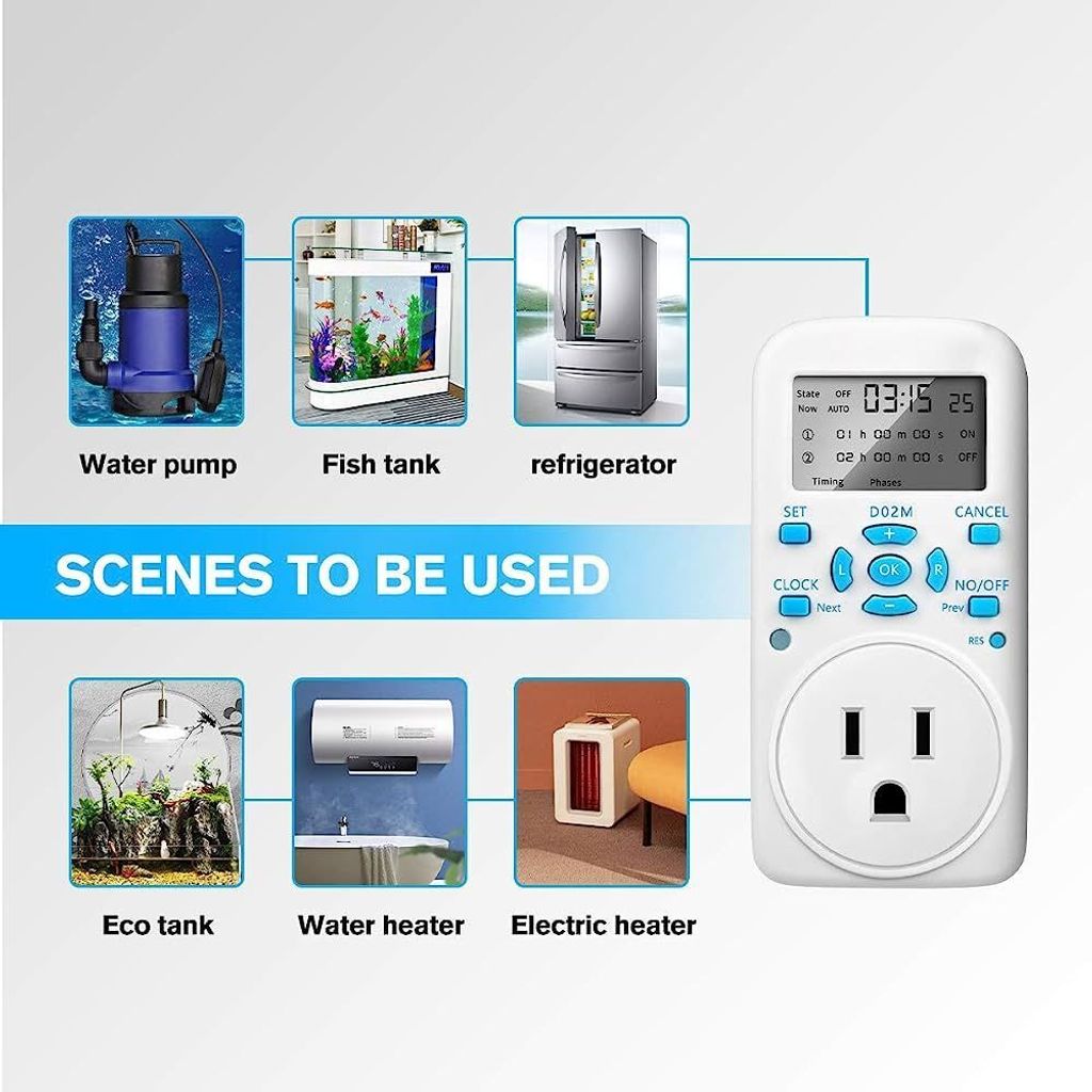 Timer Outlet, Programmable 110V/220V Pump Timer Switch, Minimum Setting by Seconds, Timing Socket Converter, Power Timing Automatic Control Outlets