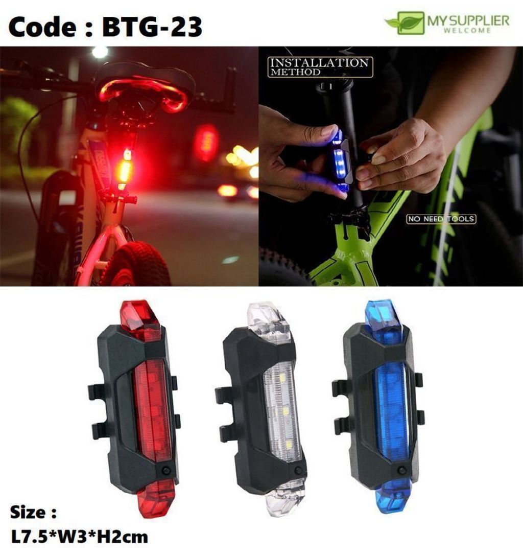 BTG-23 Bike Tail Light LED Waterproof Rear Tail Light USB Rechargeable Mountain Bike Safety Warning Light