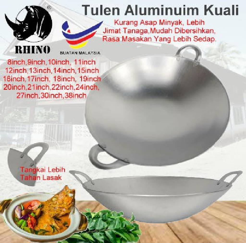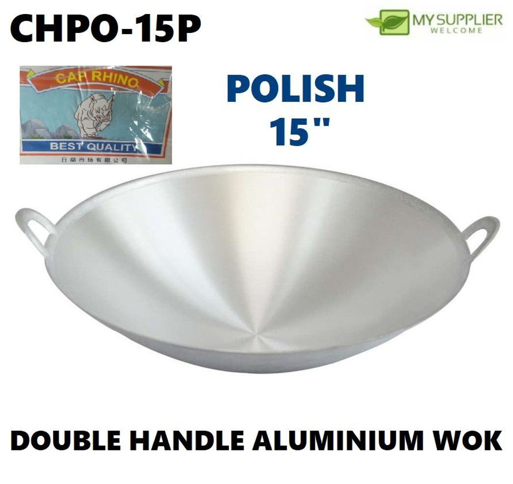 POLISH - 15" Rhino Double Handle Aluminium Wok / Kuali Masak Kilat
