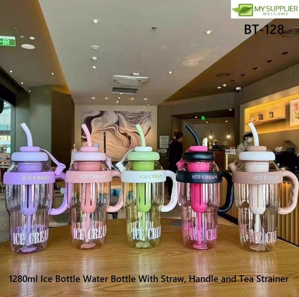 BT-128 1280ml Ice Bottle Water Bottle With Straw, Handle and Tea Strainer