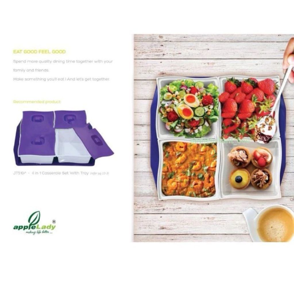 CTCO-5104 Applelady 5104 Casserole Set With Tray/Square Tray/Bekas Kuih Raya.Lauk,Buah L39*W35*H6.5cm