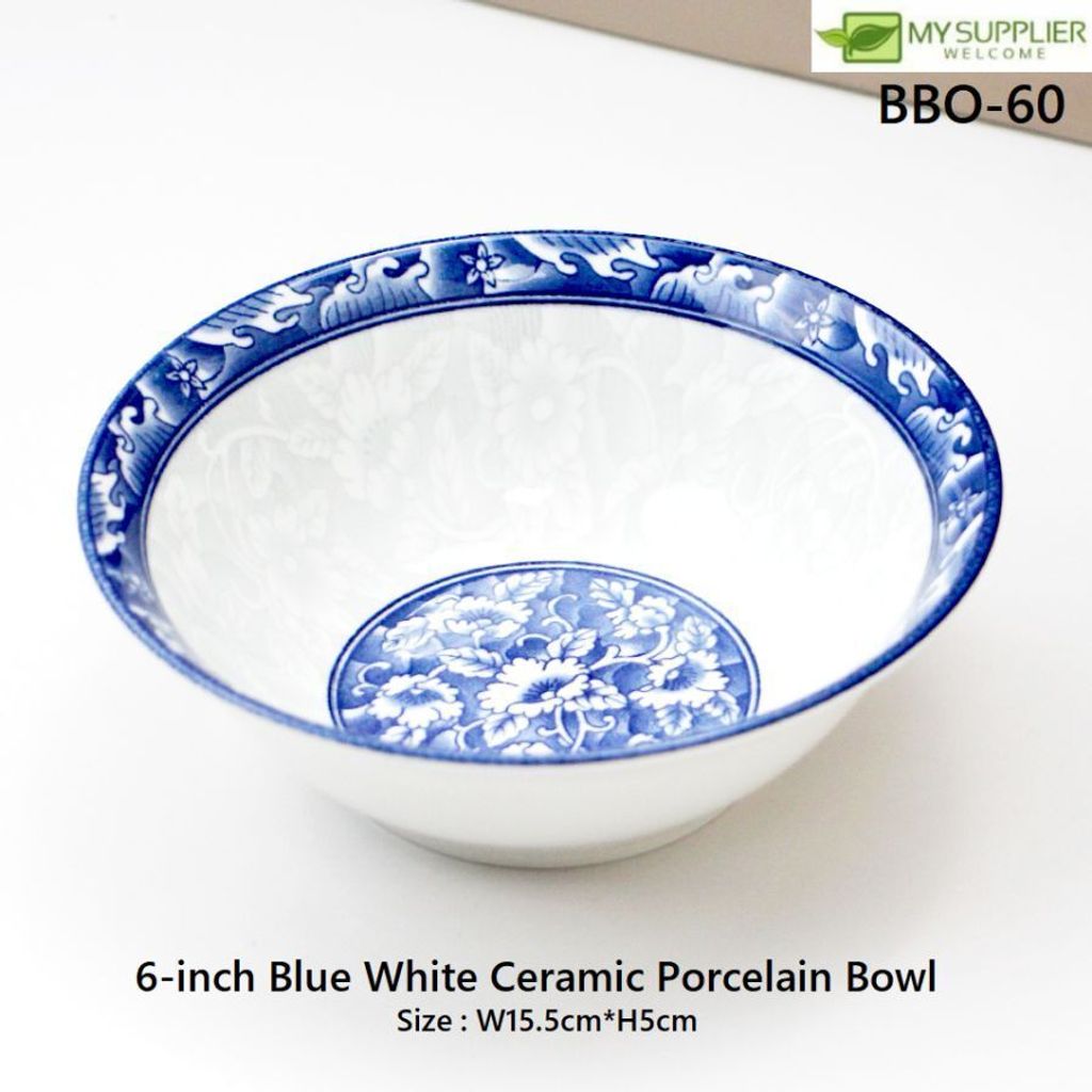 BBO-60 6-inch Blue White Ceramic Porcelain Bowl W15.5cm*H5cm