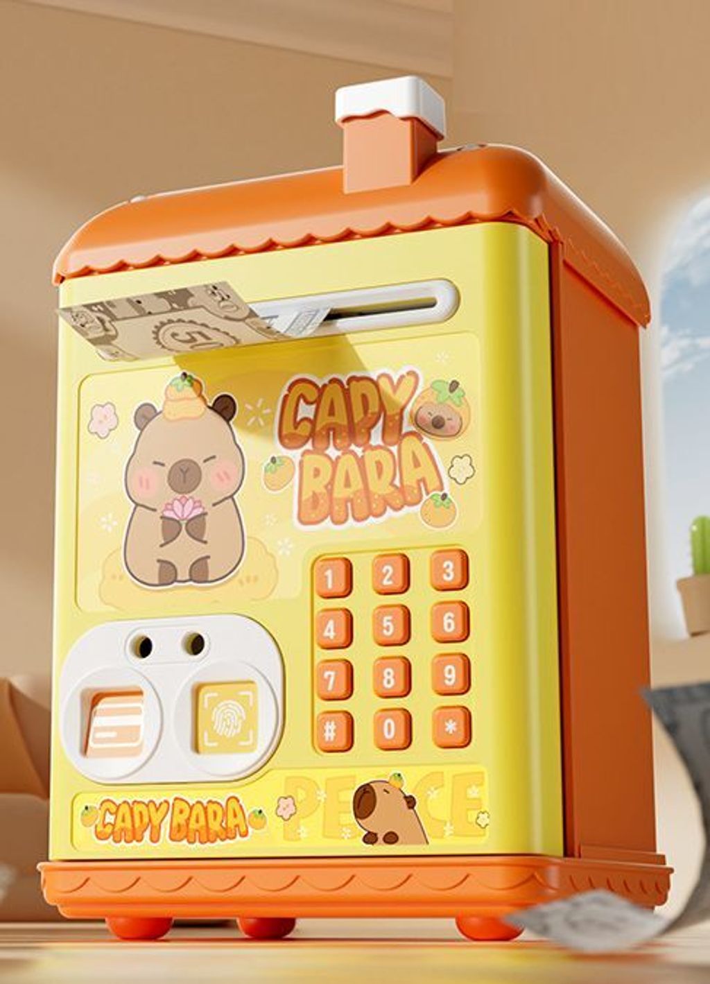 - The product is designed to teach children about saving money through interactive play.