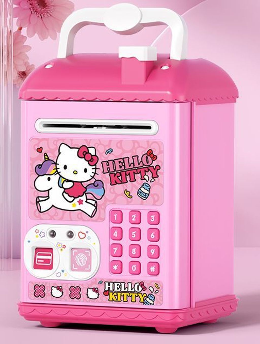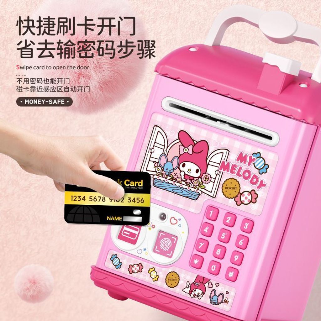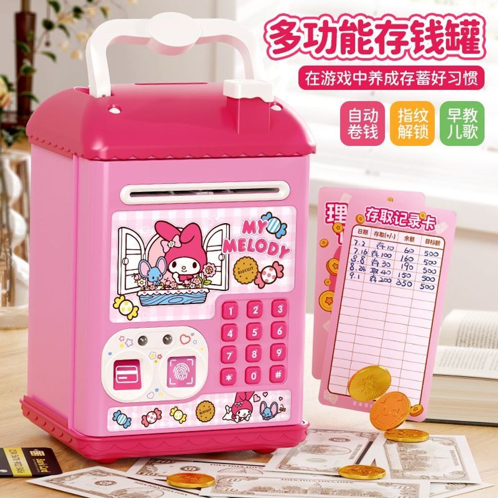This is a My Melody-themed electronic ATM piggy bank for children.