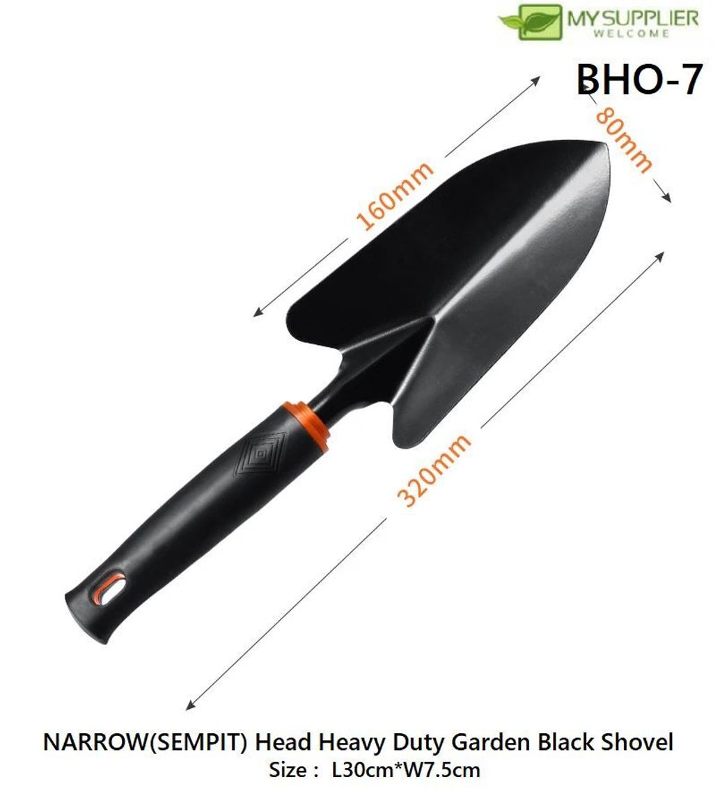 1. NARROW(SEMPIT) Head Black Shovel With Rubber Handle Heavy Duty Garden Black Shovel L30cm*W7.5cm