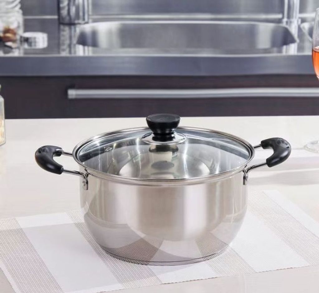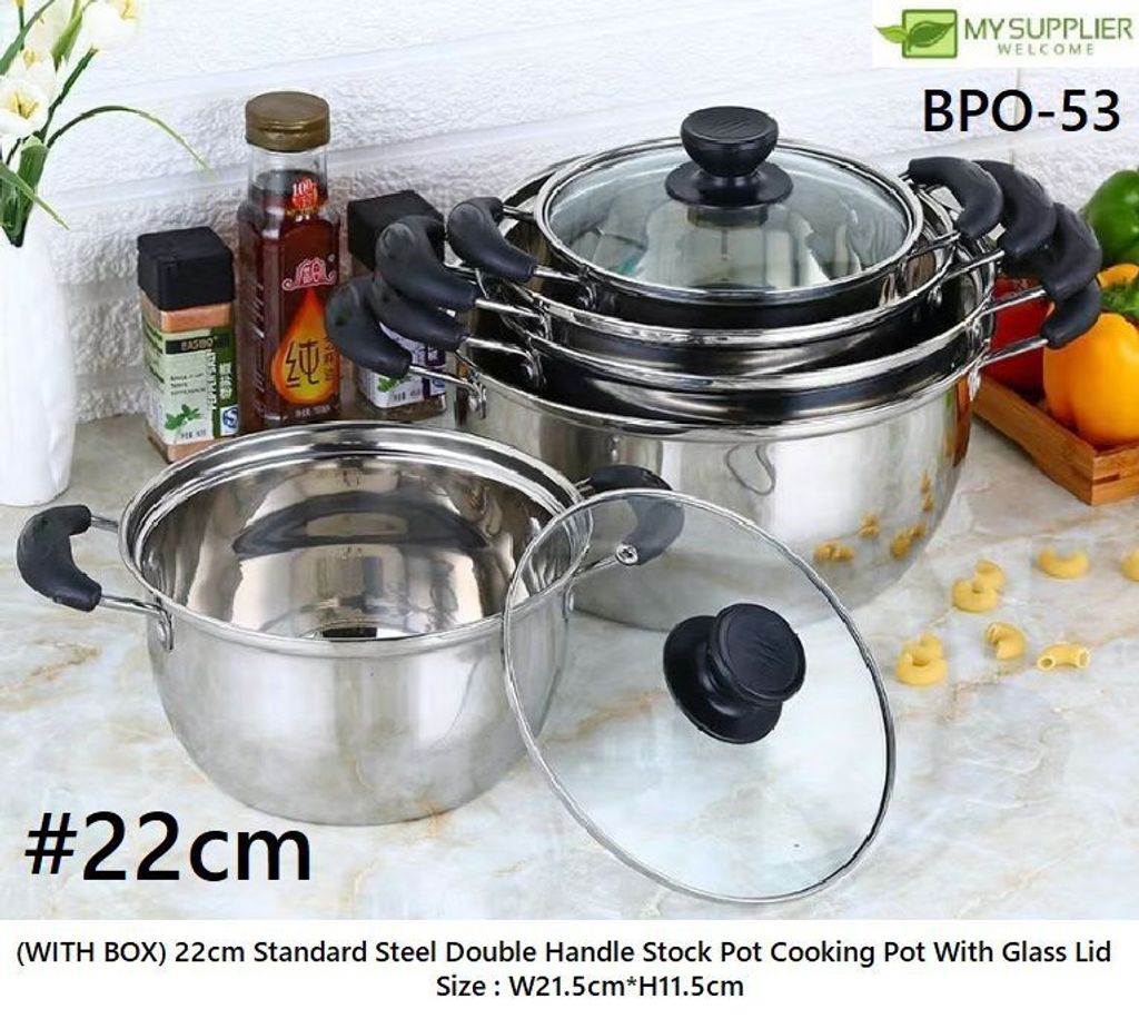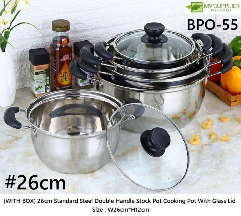 (WITH BOX) Standard Steel Double Handle Stock Pot Cooking Pot With Glass Lid (20cm/22cm/24cm/26cm)