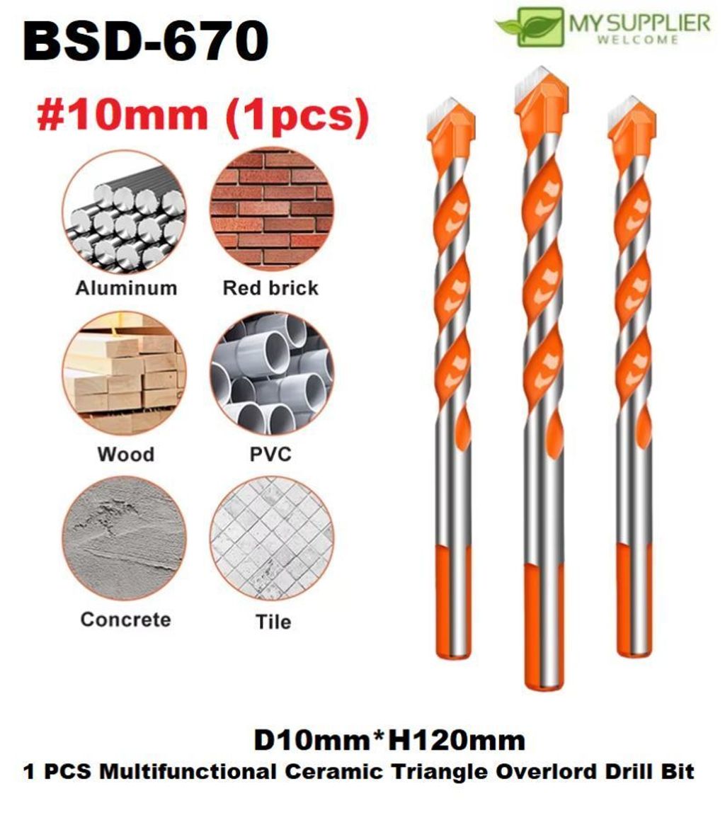 3. 1 PCS 10mm Multifunctional Ceramic Triangle Overlord Drill Bit L12cm