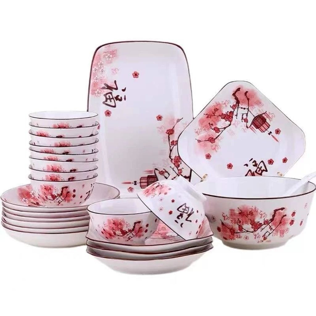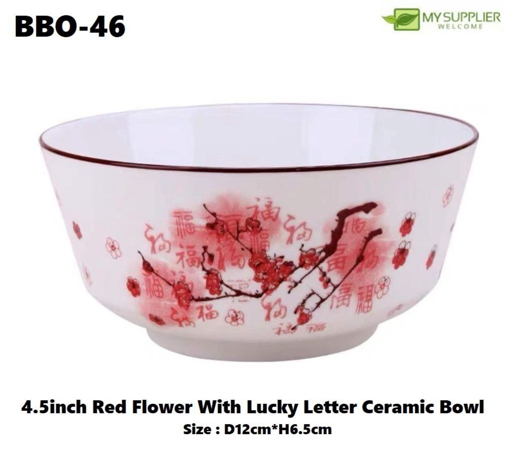 BBO-46 4.5inch Red Flower With Lucky Letter Ceramic Bowl D12cm*H6.5cm