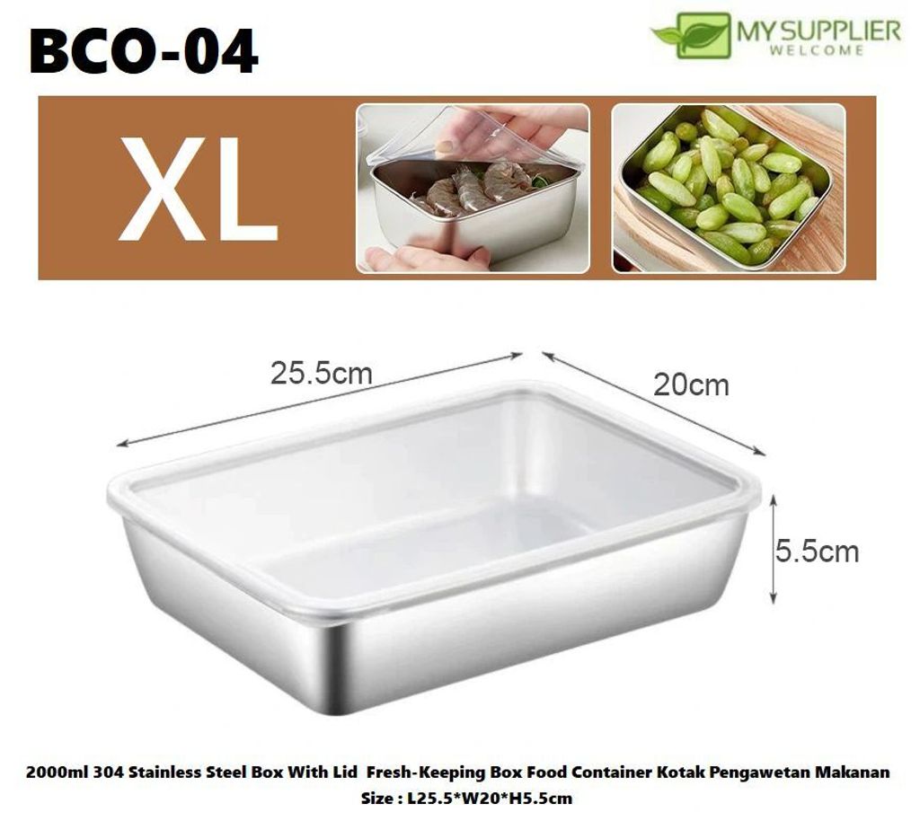 BCO-04 2000ml 304 Stainless Steel Box With Lid Fresh-Keeping Box Food Container Kotak Pengawetan Makanan