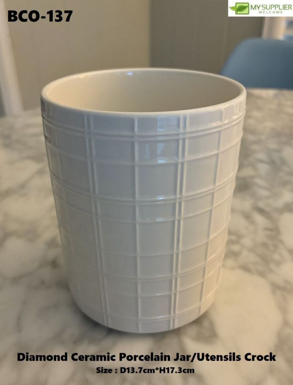 BCO-137 Diamond Ceramic Porcelain Jar/Utensil Crock D13.7cm*H17.3cm