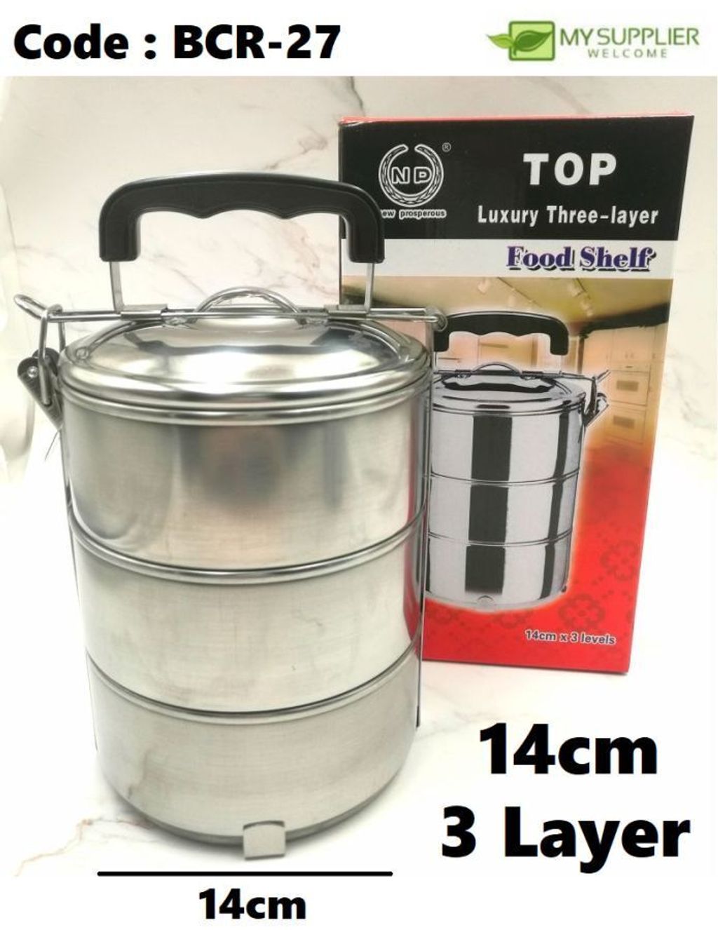 BCR-27 Top Luxury (14cm) 3 LAYER Stainless Steel Food Shelf Tiffin Carrier Lunch Box W14cm*H23cm