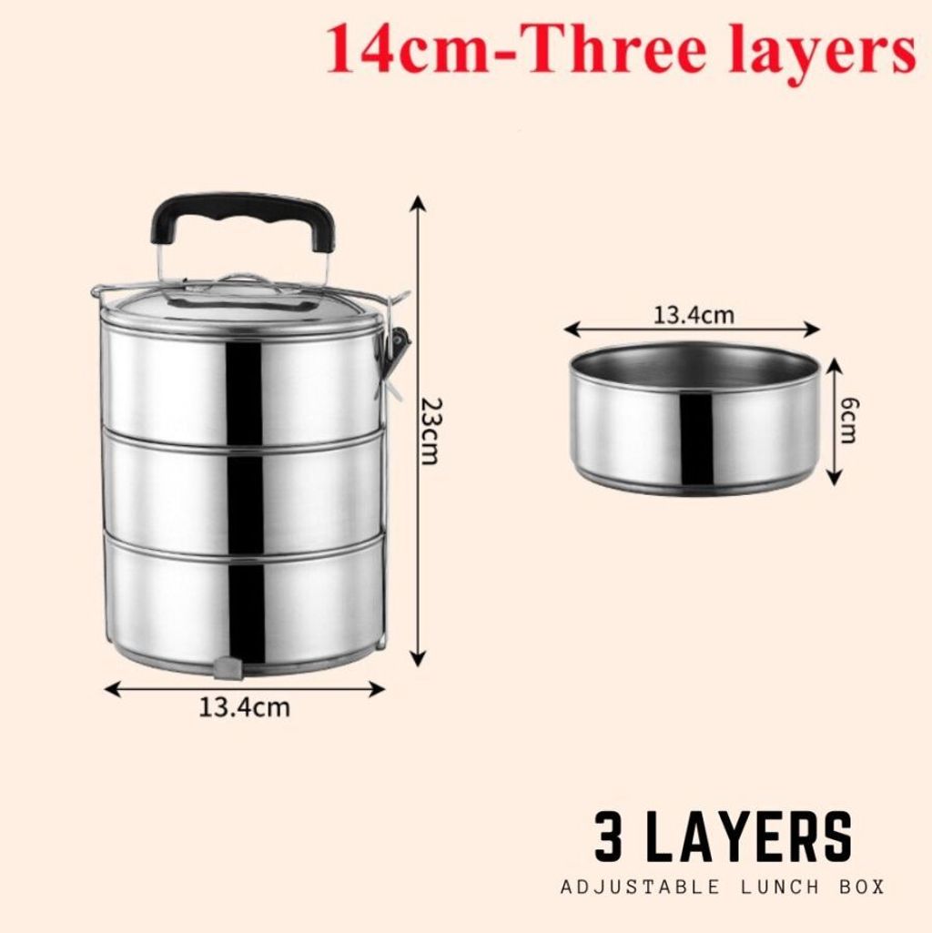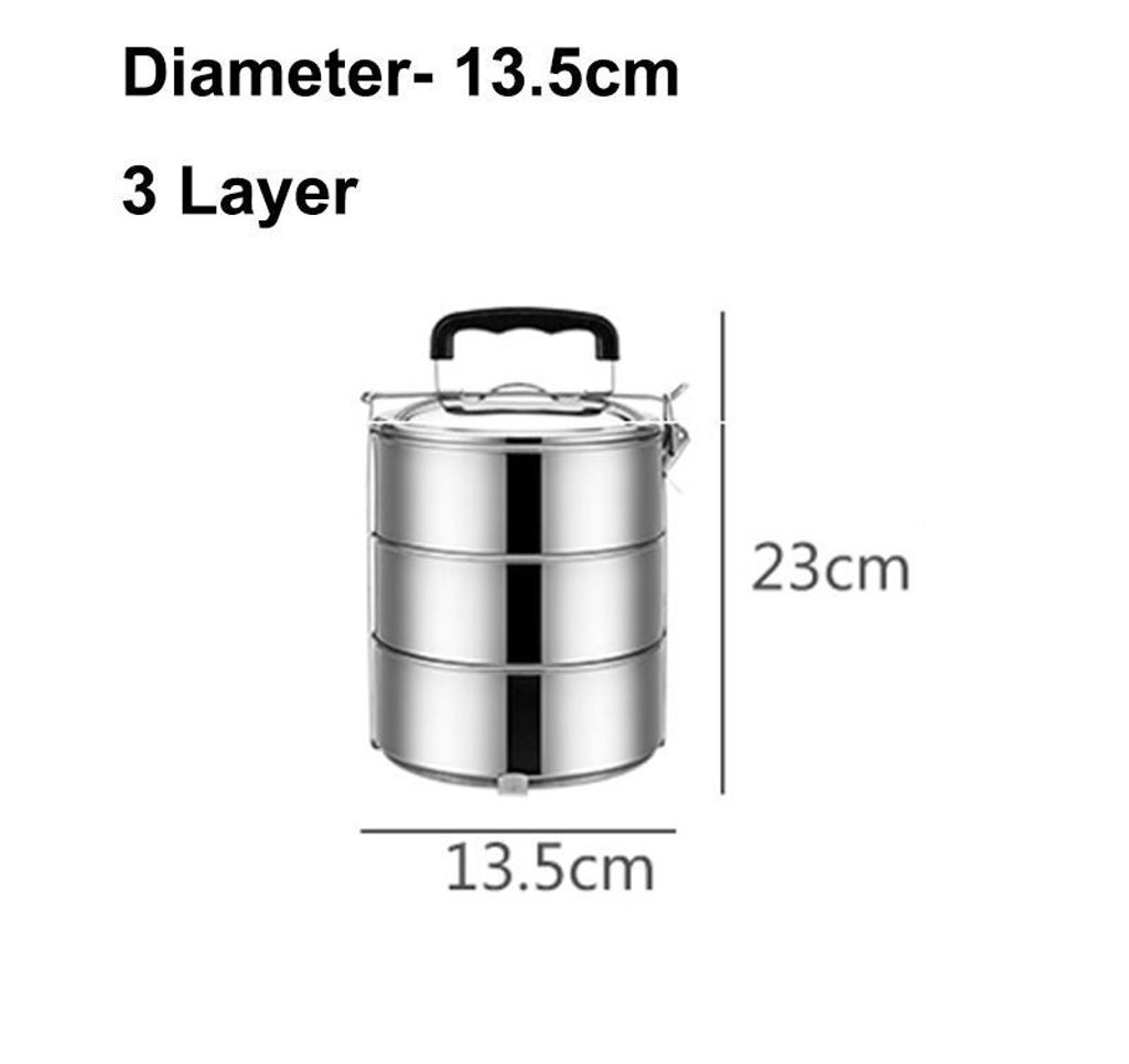 Top Luxury (14cm) 3 LAYER Stainless Steel Food Shelf Tiffin Carrier Lunch Box