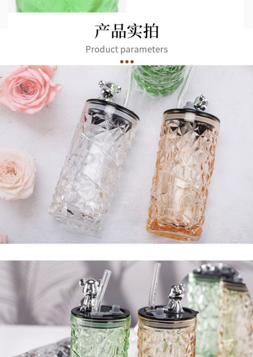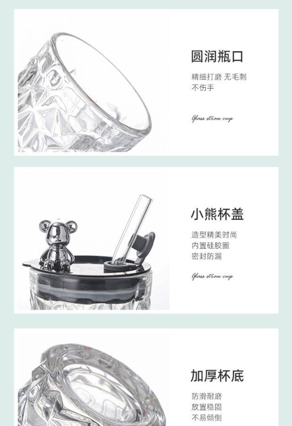 BCU-64 Diamond Bear With Straw & Lid Cup 330ml W7cm*H14.5cm
