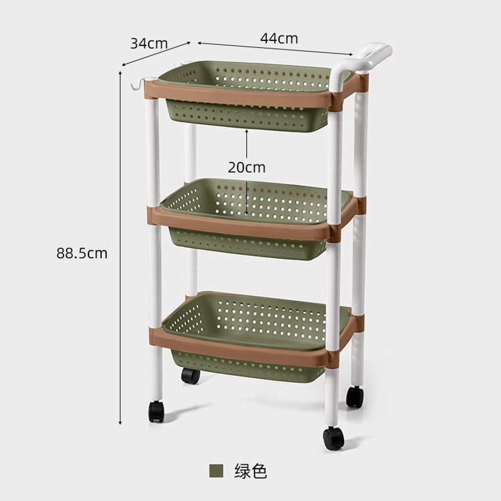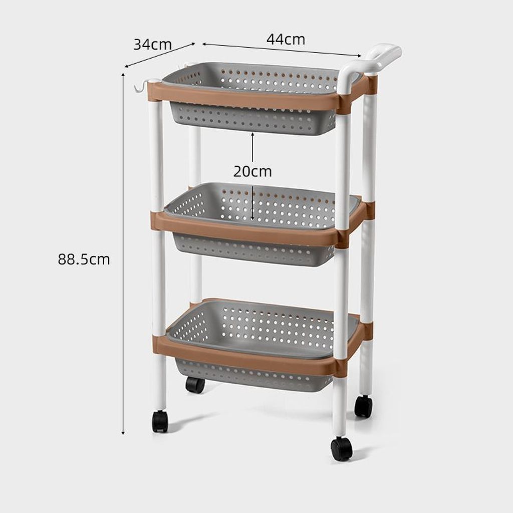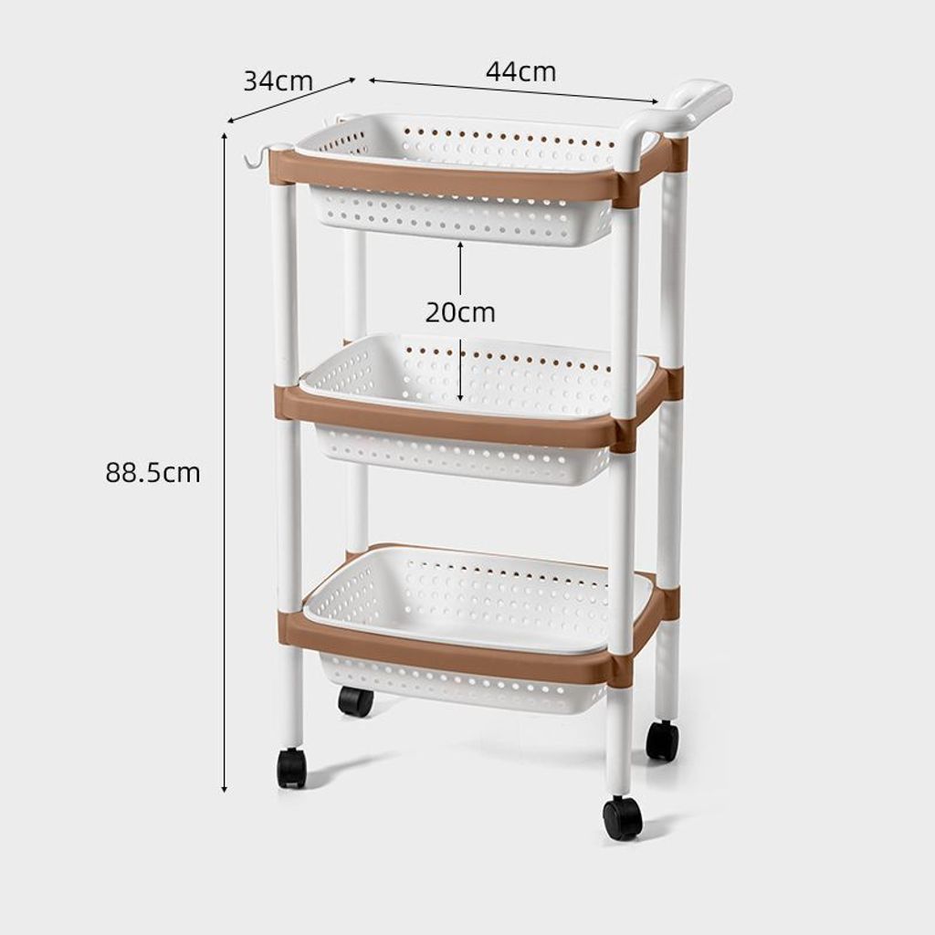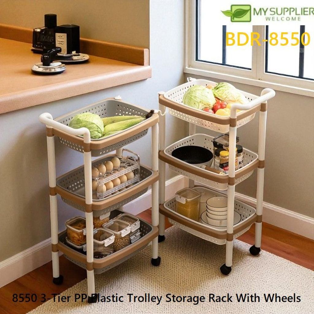BDR-8550 3-Tier PP Plastic Trolley Storage Rack With Wheels L44*W34*H88.5cm