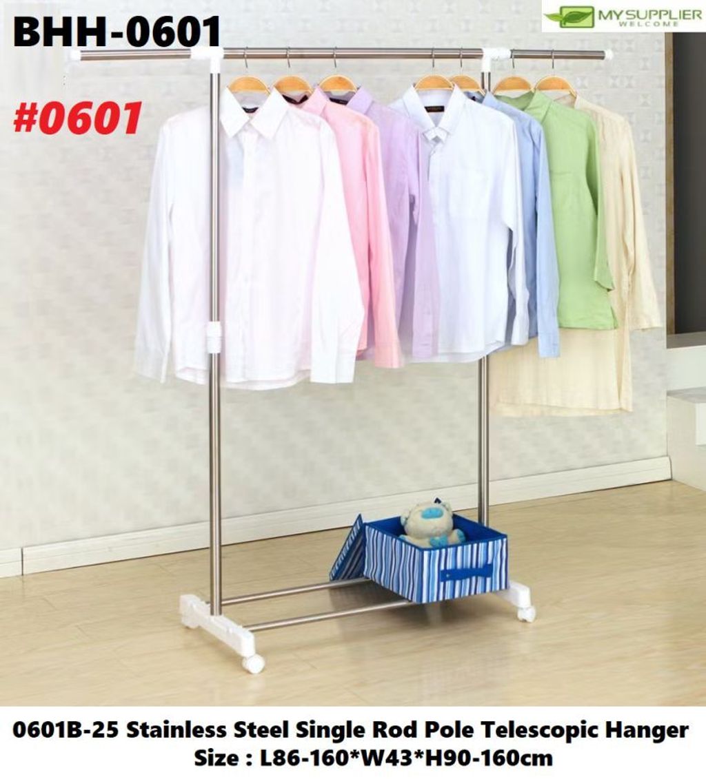0601B-25 Stainless Steel Single Rod Pole Telescopic Hanger L86-160*W43*H90-160cm