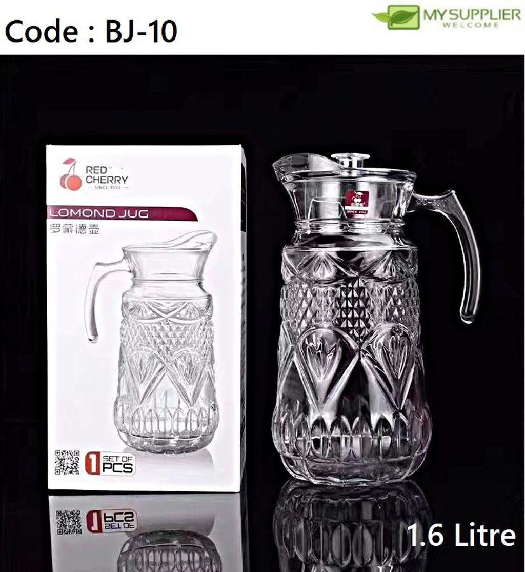 BJ-10 RED CHERRY XMK01-10 1.6 Litre Glass Water Jug With Lid / Lomond Jug D9.5cm*H24cm